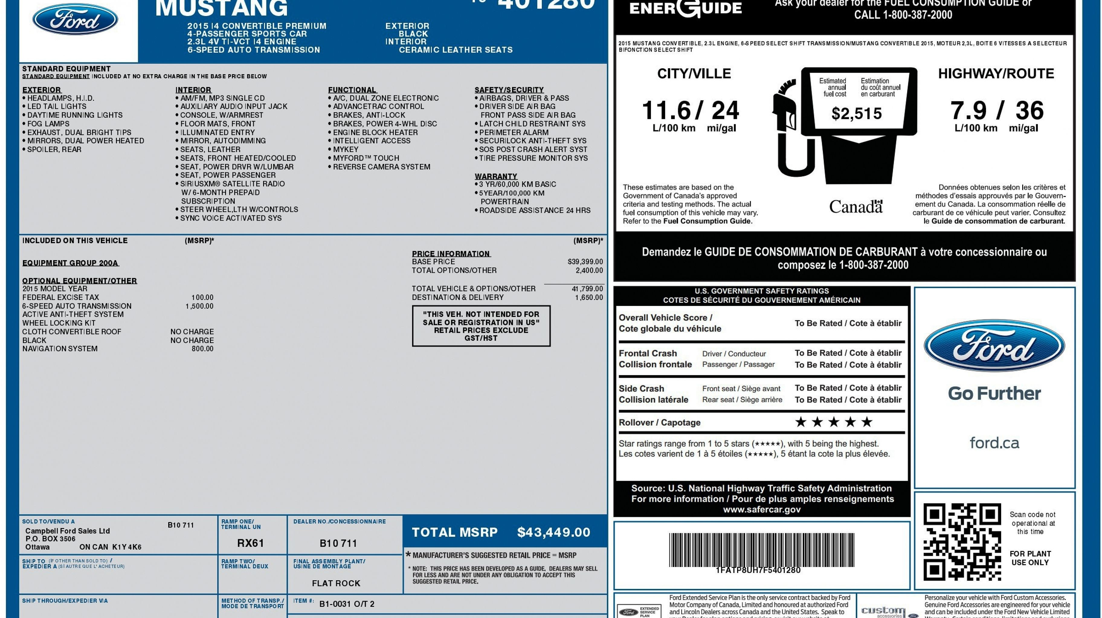 Informations sur le véhicule