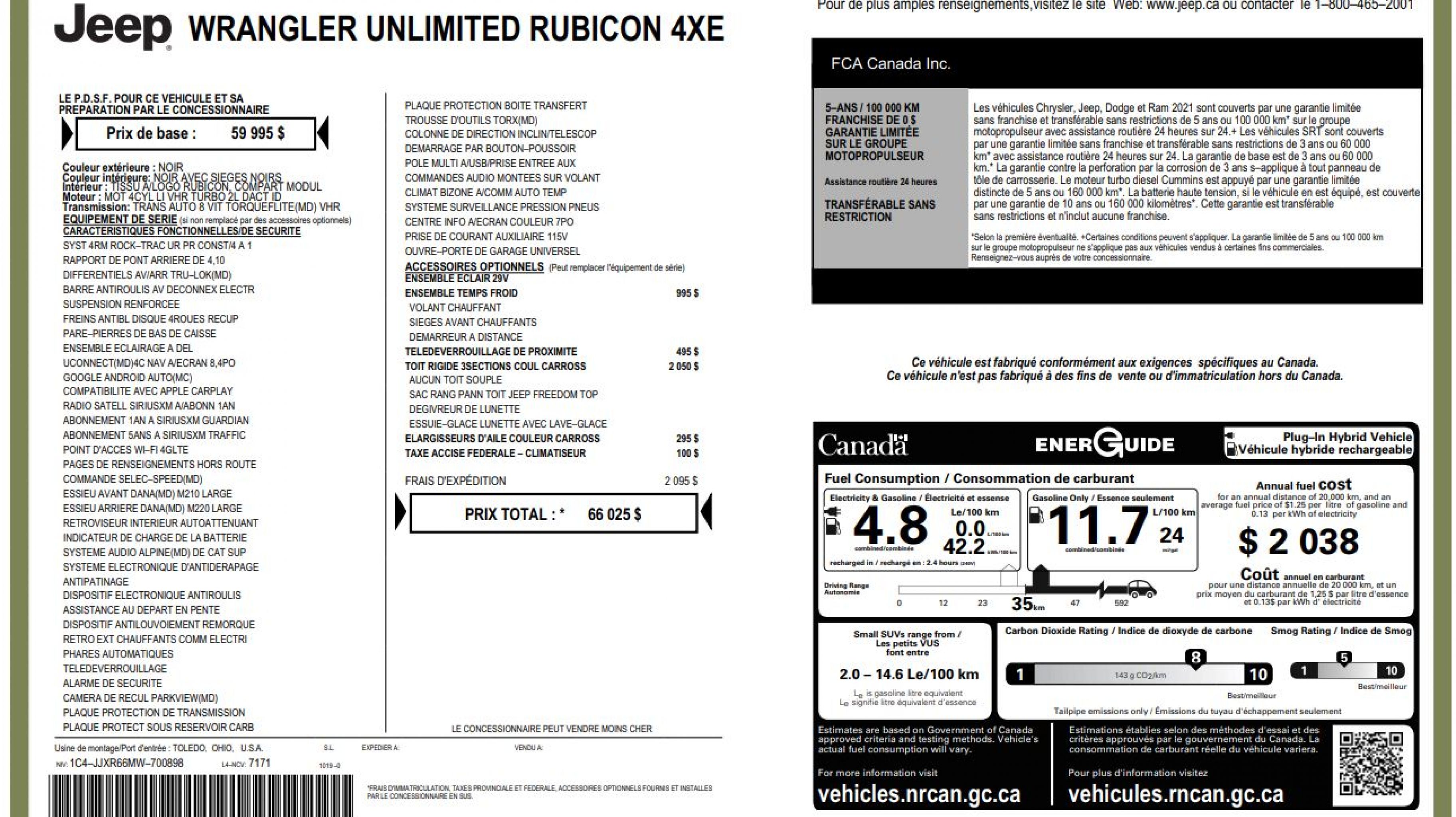 Informations sur le véhicule
