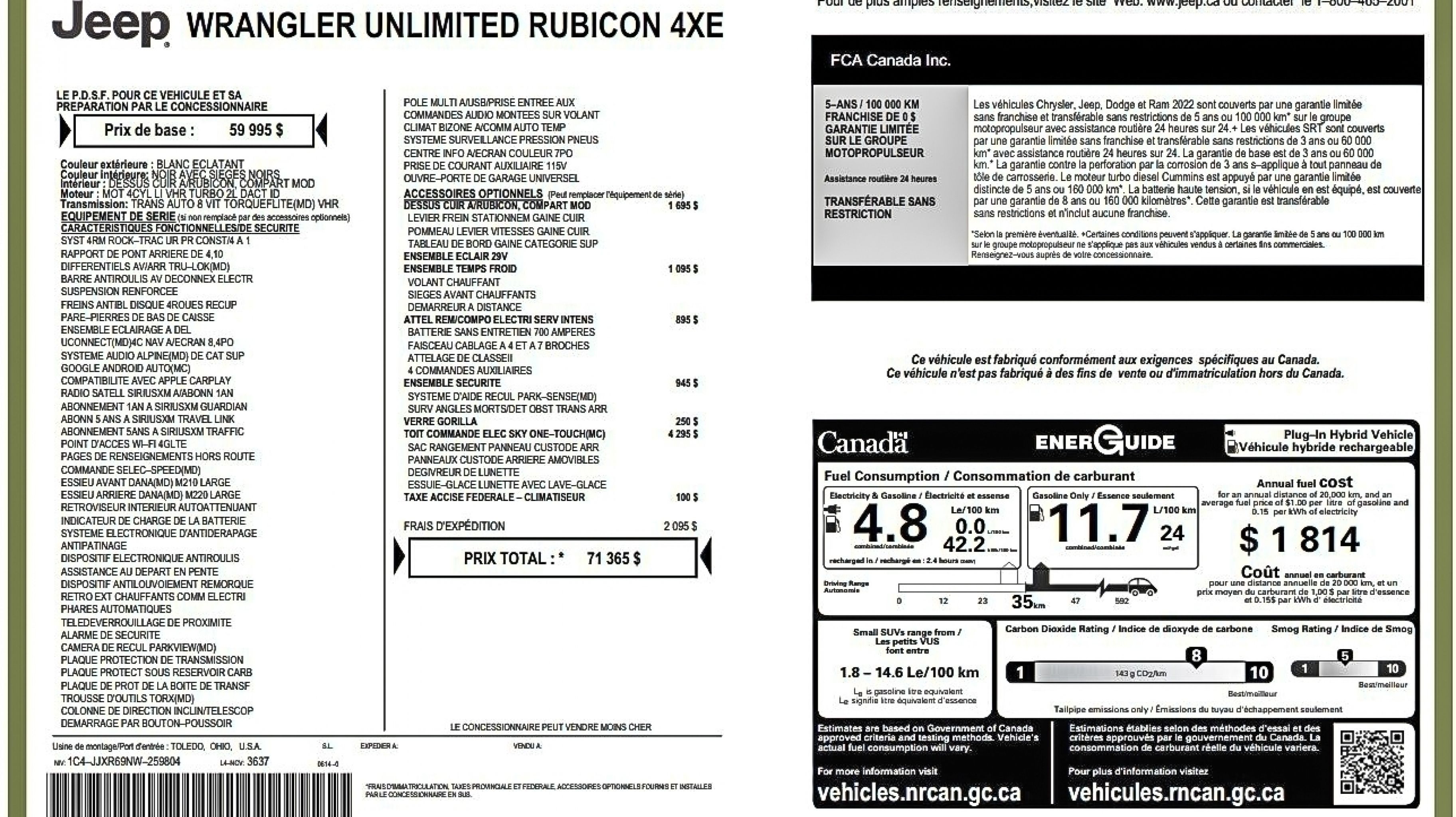 Informations sur le véhicule