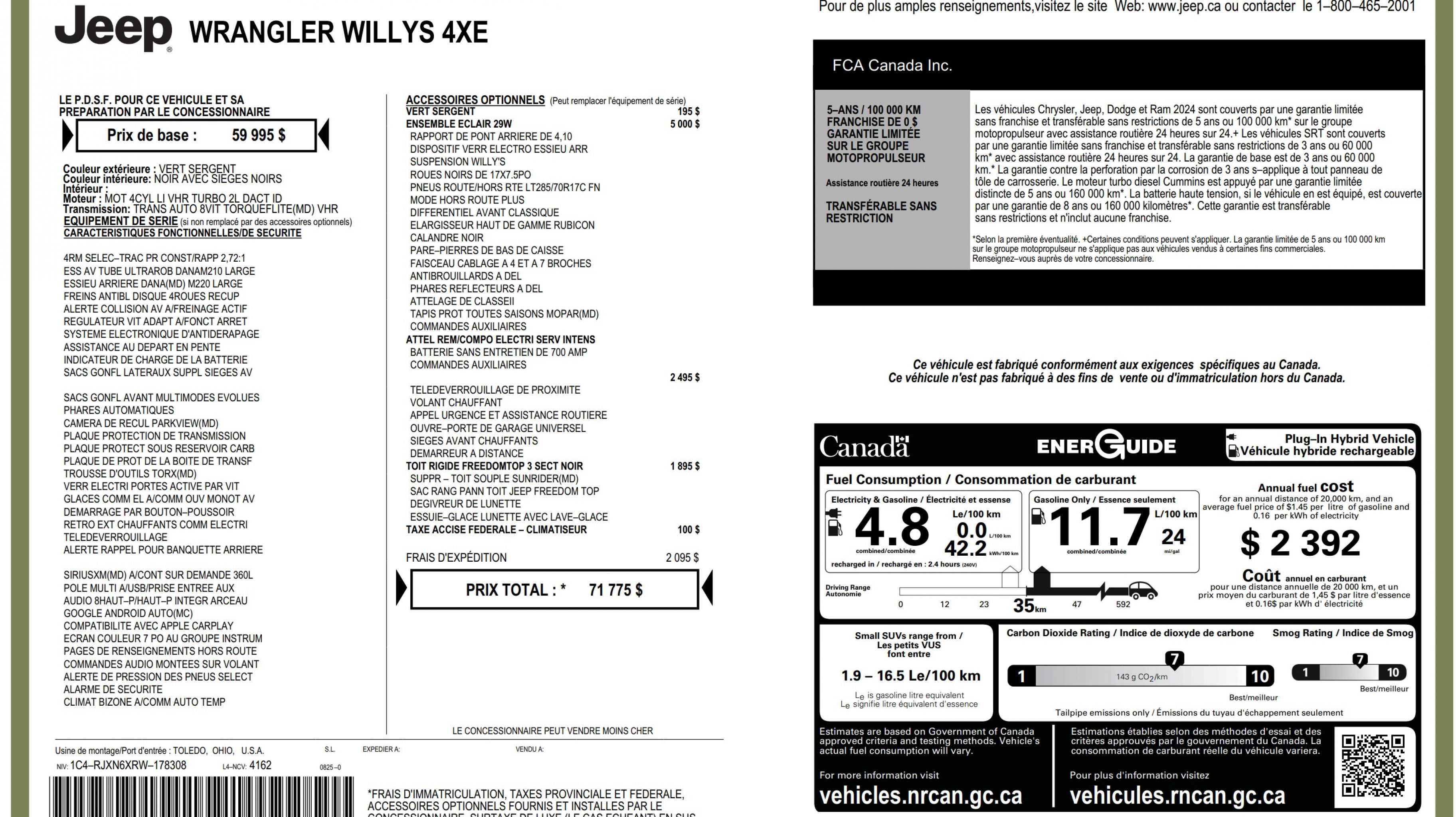 Informations sur le véhicule
