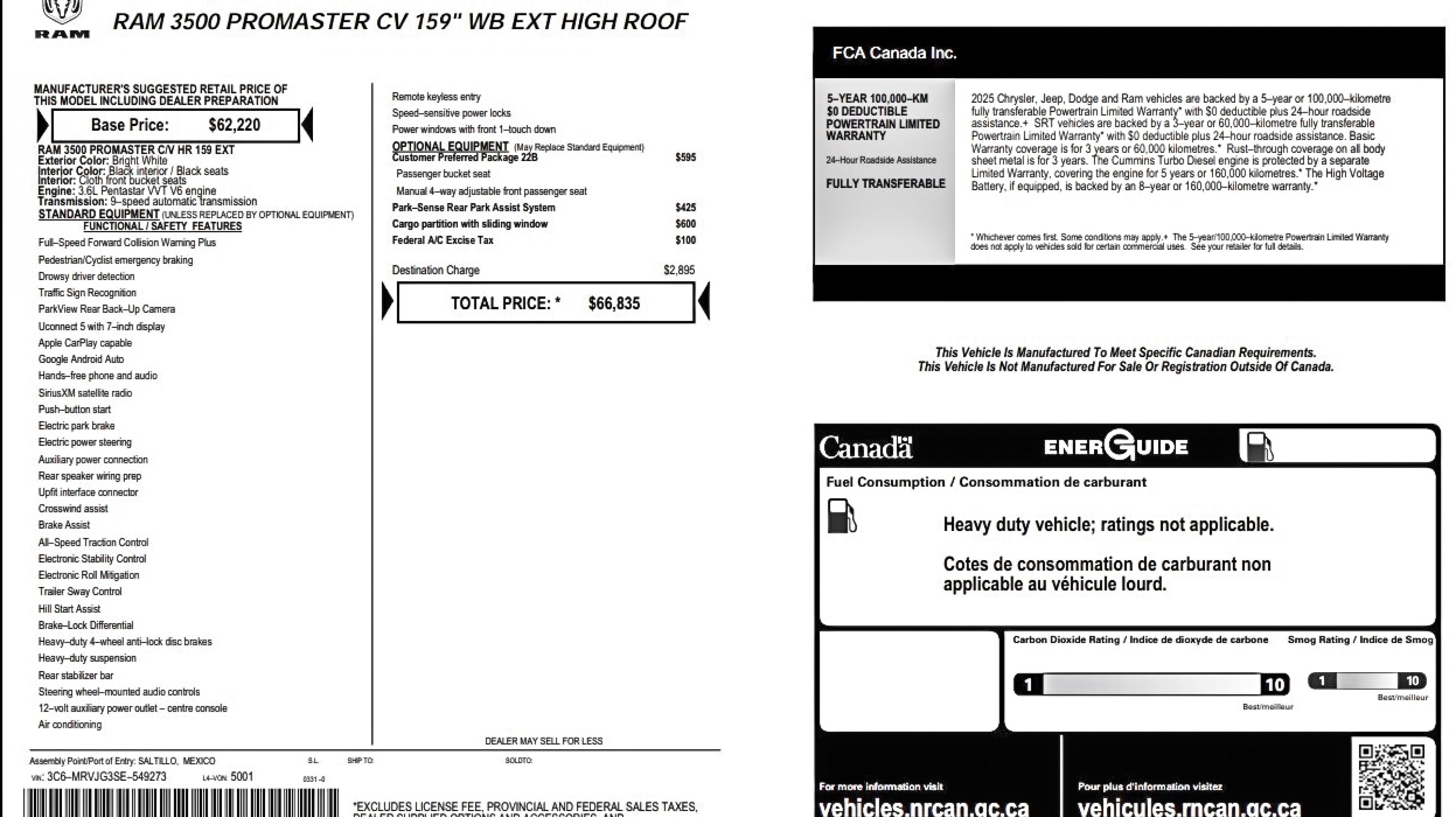 2025 Ram Promaster Tradesman 3500 High Roof Ext 159" WB w/Pass Seat